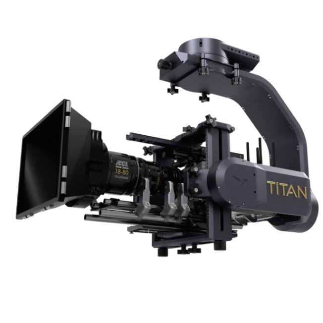 The TITAN Head by MotoCrane™, is the most powerful remote head in production today. Weighing in at just 46 lbs., the Titan Head features slot-less motors and slip rings on each axis capable of endless 360º rotations whilst carrying payloads of up to 90 lbs at driving speeds up to 100 miles per hour. Over-slung, under-slung and "Matrix" mount capable. Focal length stabilization up to 400 mm! Head comes with joysticks and wheels, 2.4 GHz wireless, and integrated lens control (FIZ). Package and optional equipment on the Rate Sheet.